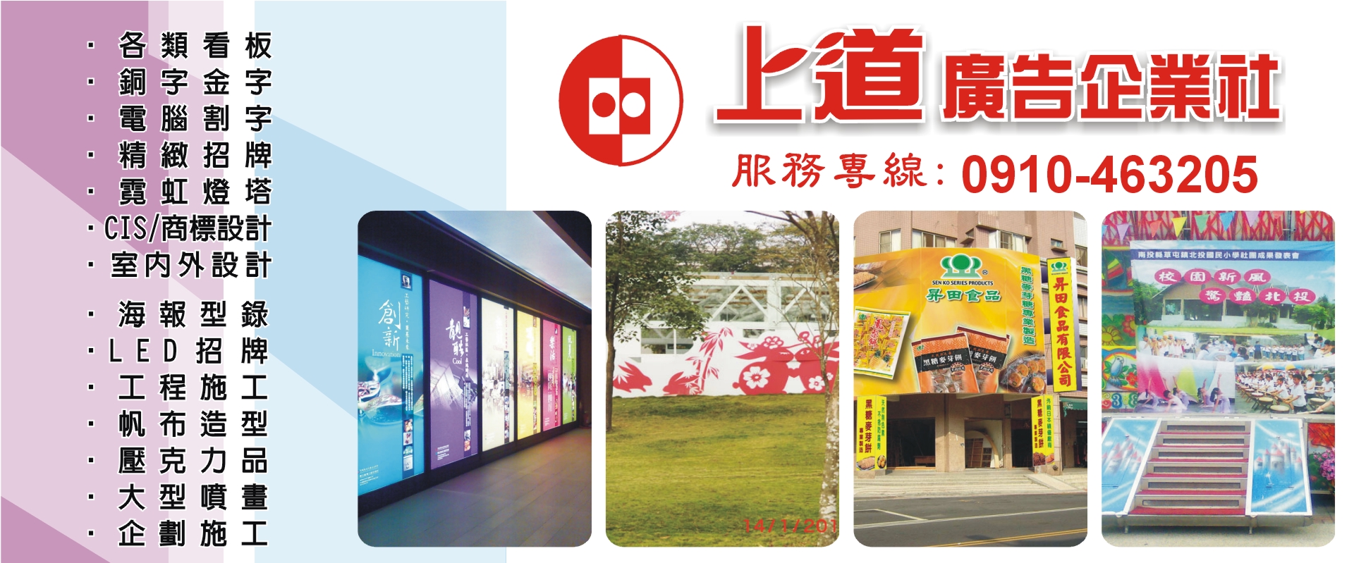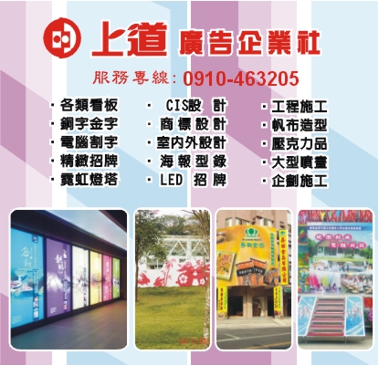上道廣告企業社 - 電腦割字、企業施工、各類看板、精緻招牌、帆布造型
